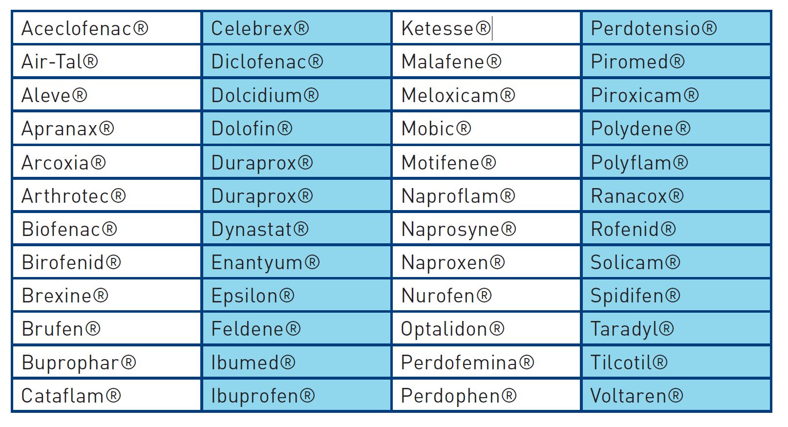 levenslang te nemen. Ook bij inname van ontstekingsremmers (cfr. tabel)